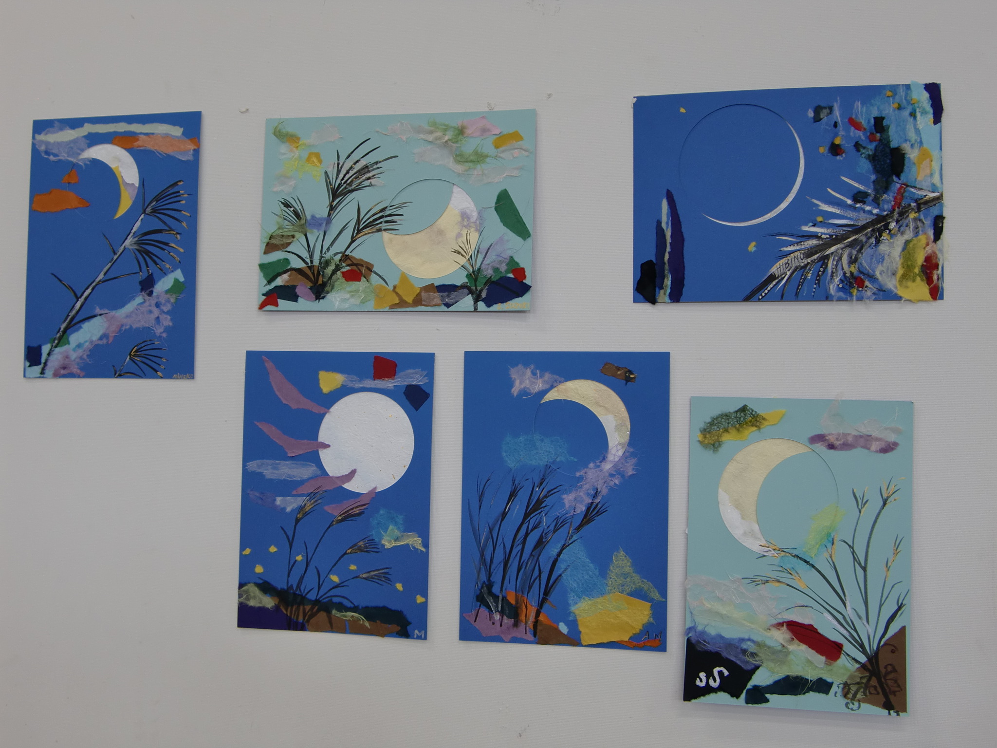 和紙でこよりを作ってヒゲを表現したり、くしゃくしゃにして葉っぱの質感を出したりと皆さん思い思いの大根を描いていました。